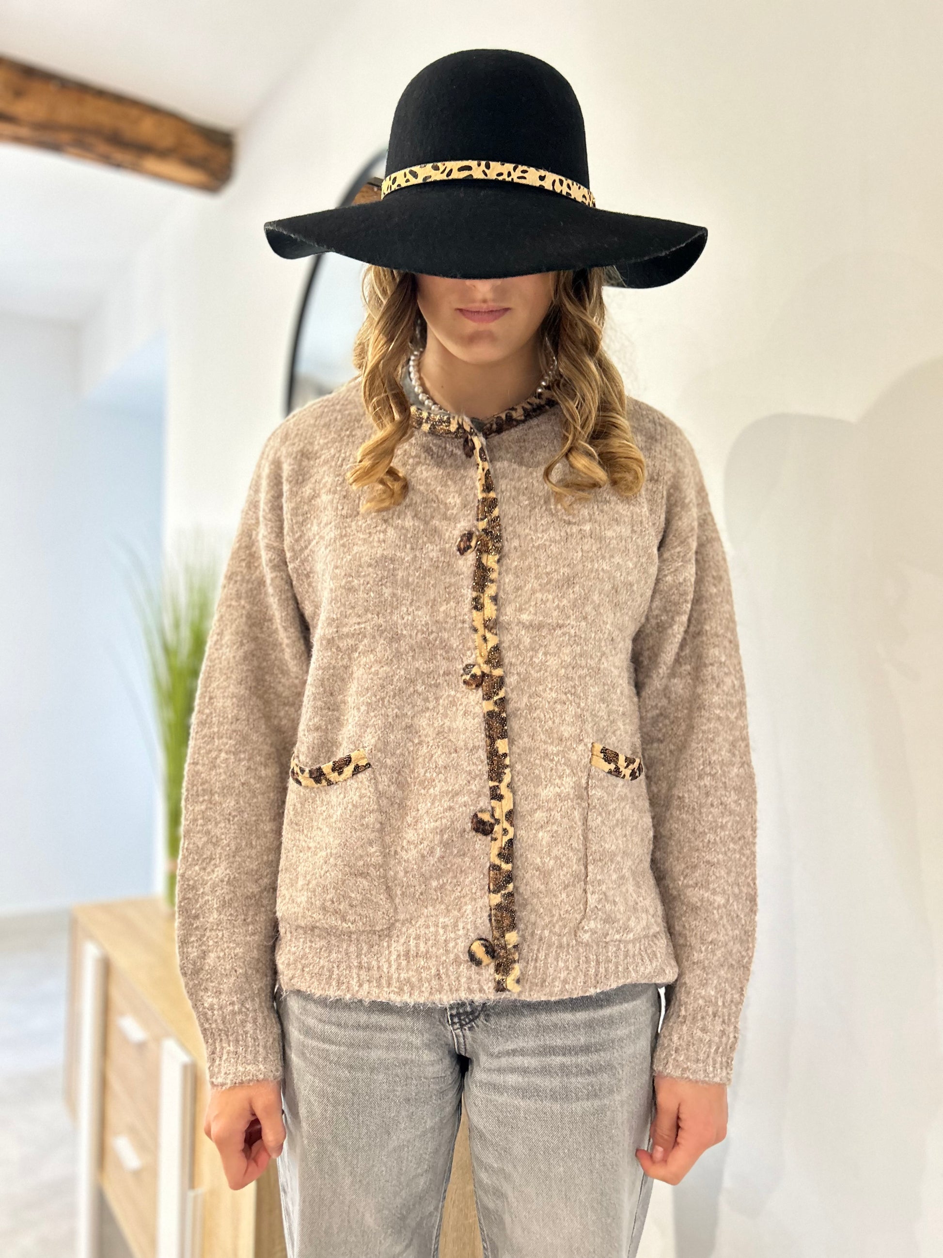 Sa coupe fluide et sa couleur neutre permettent de l’associer facilement à vos tenues quotidiennes, tandis que ses motifs léopard apportent un côté tendance et moderne. Parfait pour un look casual chic, ce gilet se porte aussi bien sur un jean qu’avec une jupe pour un style plus féminin.