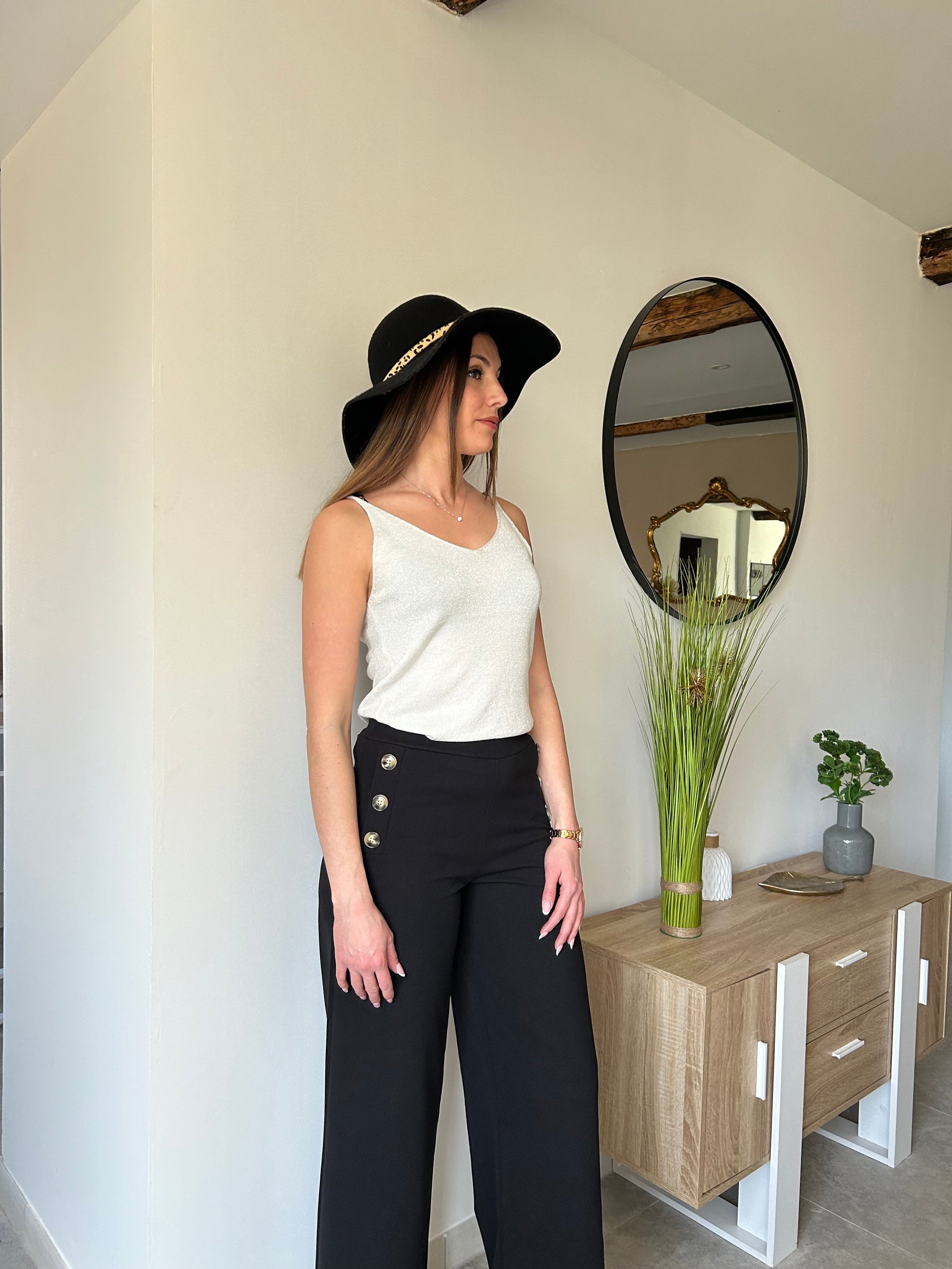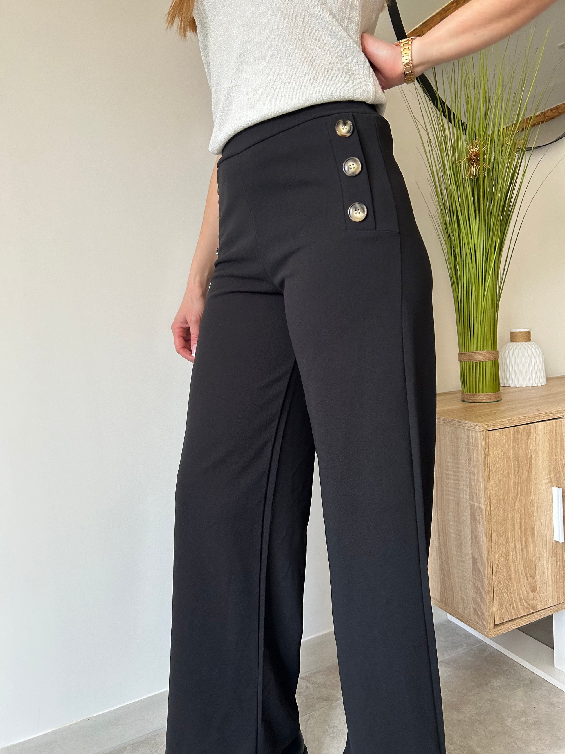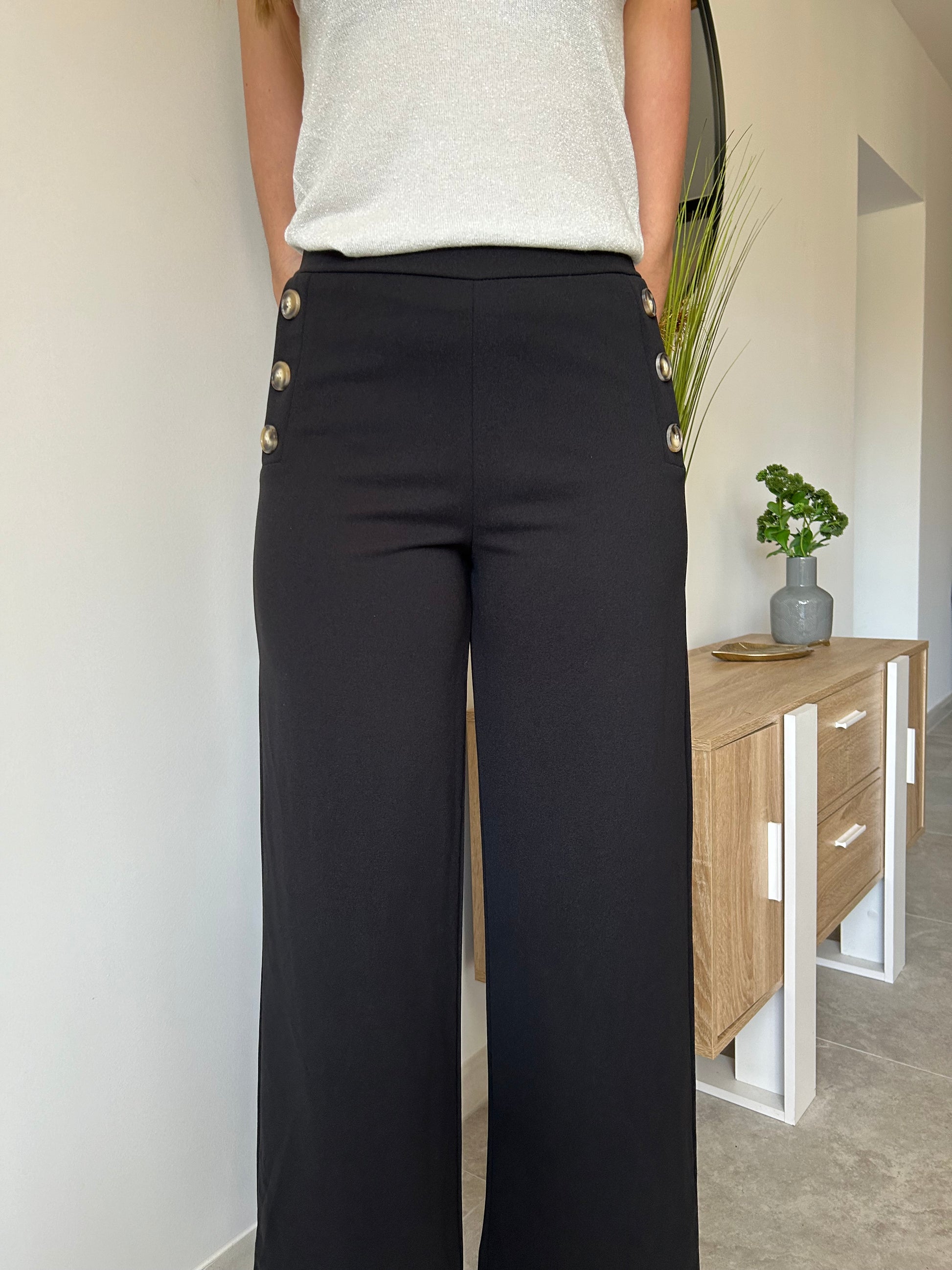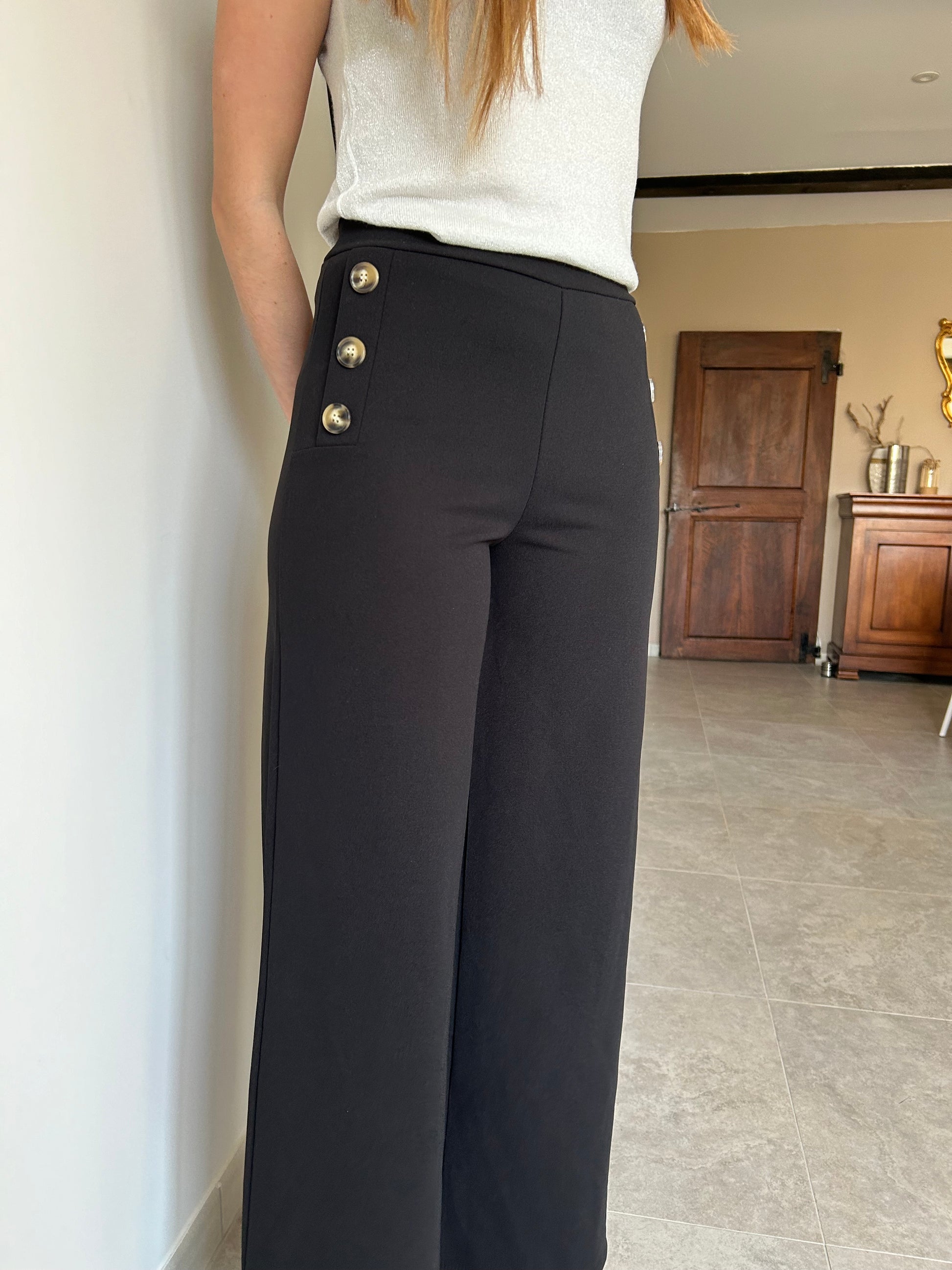 Découvrez le pantalon large noir à boutons, l’alliance parfaite entre audace et élégance. Sa coupe moderne, rehaussée de détails minutieux tels que les boutons latéraux, offre une silhouette contemporaine qui s’adapte aussi bien à vos tenues professionnelles qu’à vos soirées chics. Conçu pour vous garantir confort et style, ce modèle se distingue par sa qualité de fabrication et son caractère affirmé. Optez pour un look sophistiqué et résolument tendance, et laissez transparaître votre personnalité unique avec ce pantalon incontournable.